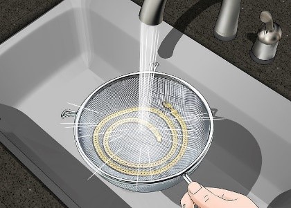 سپس زنجیر طلا را به طور کامل با آب سرد بشویید که مایع باقی مانده از زنجیر جدا شود.