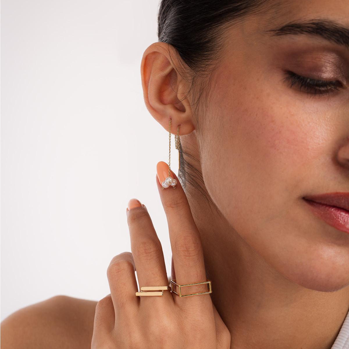 گوشواره طلا بخیه ای سه مروارید، از محصولات جدید پرسته، انتخابی زیبا و خاص برای استفاده روزانه و همچنین هدیه‌ای خیره‌کننده برای عزیزان شماست.