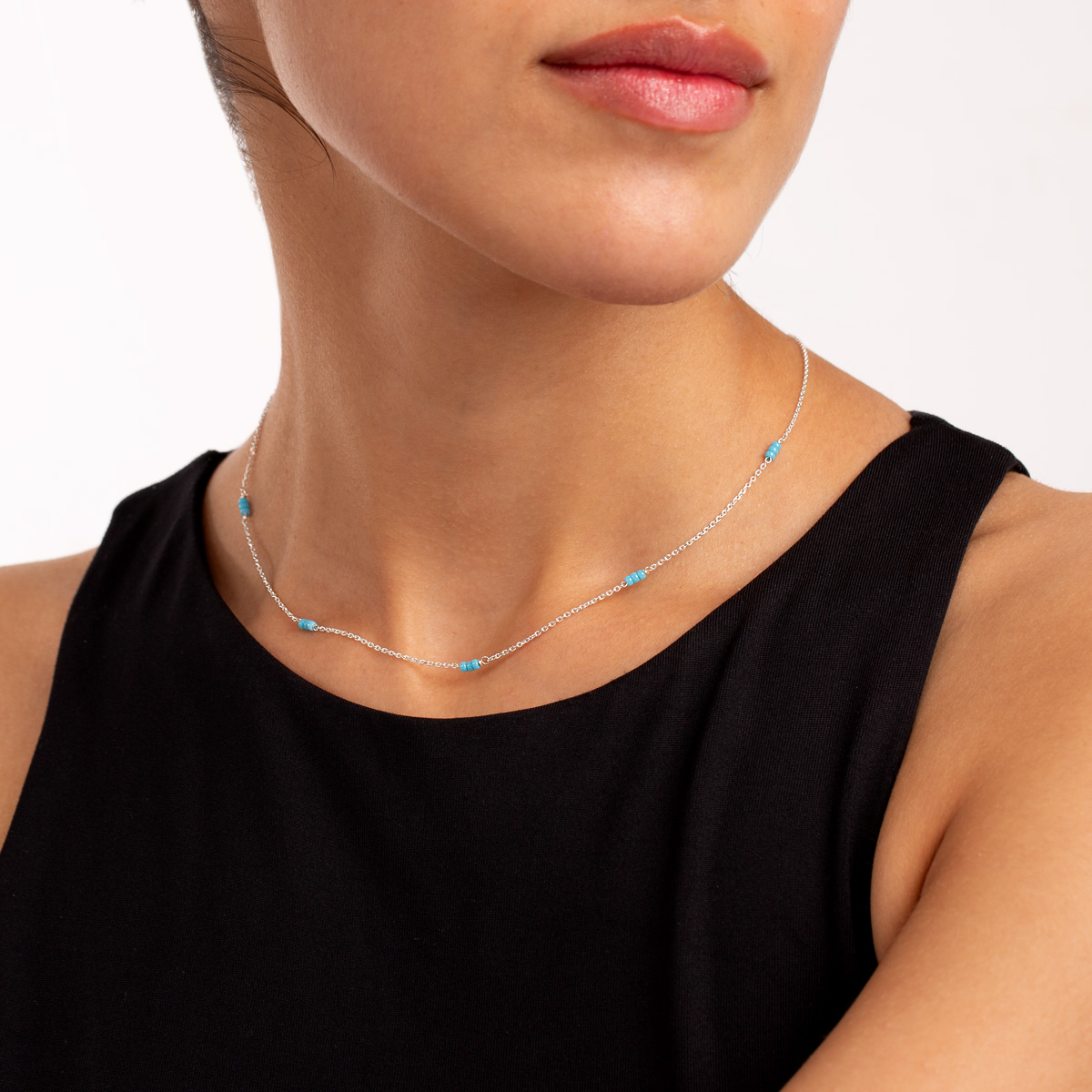 گردنبند نقره لیلیان آبی، ساخته شده از نقره 925 عیار و کاملاً دست ساز می باشد.